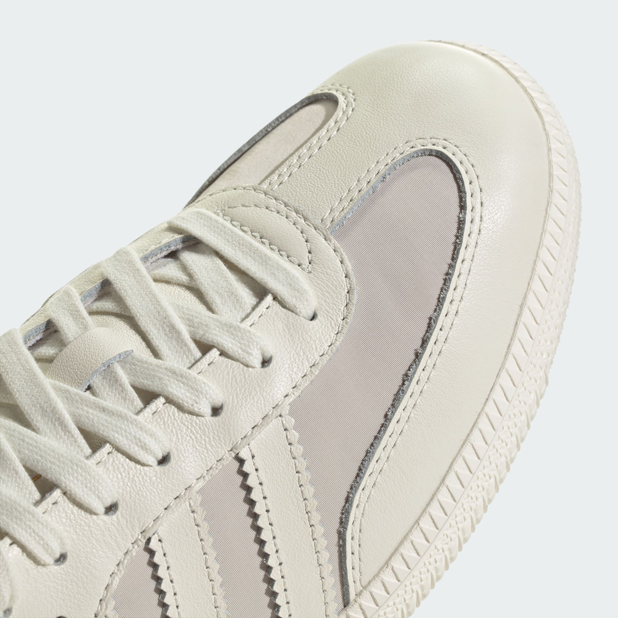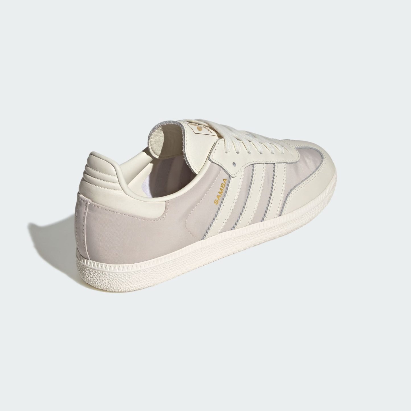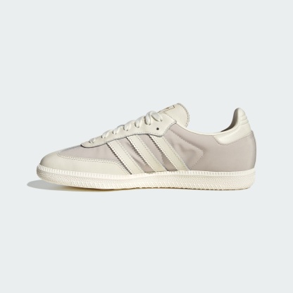 Inspired by the archives and representing the truest essence of the Trefoil, these Samba OG Shoes are the staple footwear sensation that keeps on kicking through the generations. Crafted from smooth, lightweight nylon with colorblocked overlays at the T-toe, heel and lace area, these warm weather-ready shoes ride on a textured white-walled sole for all your fair-weather excursions. Serrated 3-Stripes and gold-letter branding on the sides add the signature mark of authenticity.